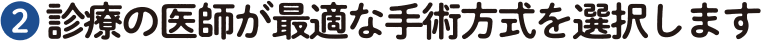 保険診療で確立された手術方法から 最適な方法を選択し、 痛みが少ない治療を目指します。