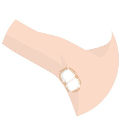 「皮弁法」とは、わきの中心をシワに沿って数センチほど切開した後、直接汗腺を取るという手術方式です。様々な治療法の中でも 腋臭症に対する治療効果があり、また併発しやすい多汗症の治療としても効果があります。また、 手術には局部麻酔を使用しますので、手術中の痛みは伴いません。